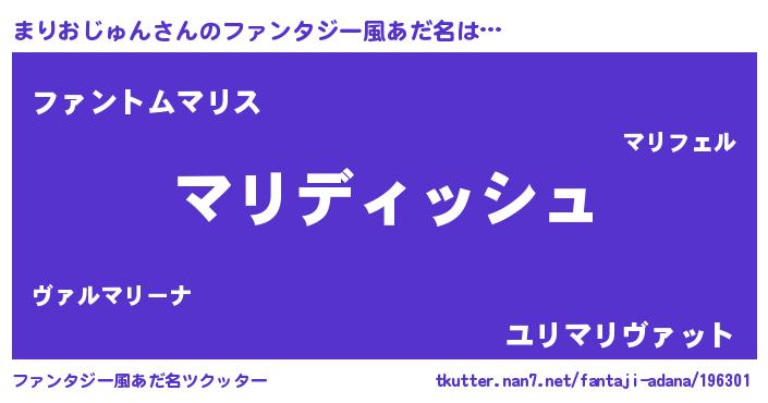 | 男性向けラノベタイトル風あだ名 | 『まりおじゅんという概念が存在しない退屈な世界 』 |