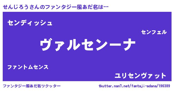 | 男性向けラノベタイトル風あだ名 | 『この素晴らしい世界にせんじろうを!』 |
