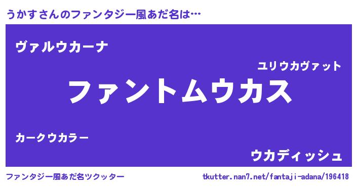 | ヒーロー風カッコイイあだ名 | 『暗黒騎士ウカ』『仮面ウカダー』 |