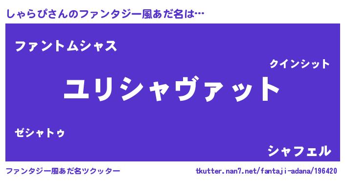 | 男性向けラノベタイトル風あだ名 | 『転生したらしゃらぴだった件』 |