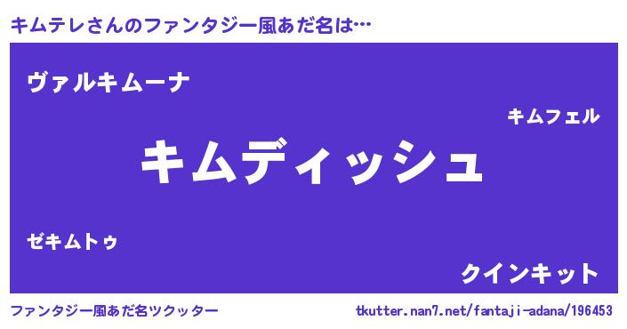 | 意味不明あだ名 | 『永久保存キムテレ』『ペロリンキムテレ』 |