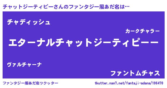 | 意味不明あだ名 | 『チャットジーティピーフォーエバー』 |