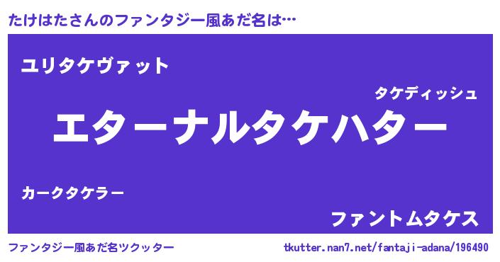 | 意味不明あだ名 | 『たけはたフォーエバー』『自称たけはた』 |