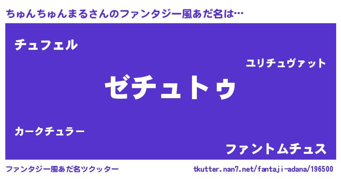 | 男性向けラノベタイトル風あだ名 | 『ちゅんちゅんまるに滅ぼされるだけの簡単なお仕事です』 |