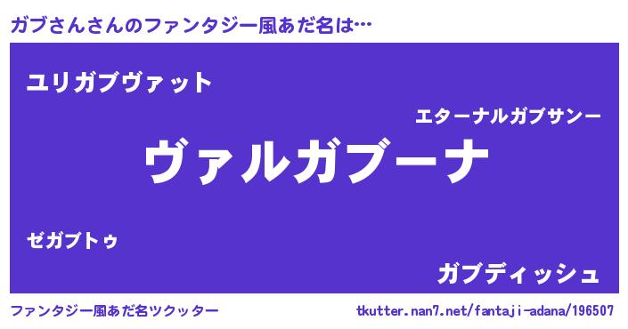 | 男性向けラノベタイトル風あだ名 | 『魔弾の王とガブさん』 |