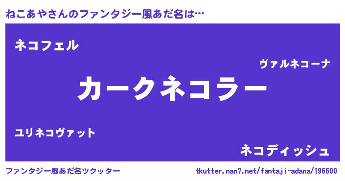 | ヘコむあだ名 | 『ねこもー』『ねこあや(小並感)』 |