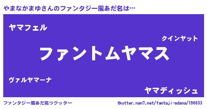 | ポケモン風あだ名 | 『ヤマゴンZ』『ヒヤマナカマユ』 |