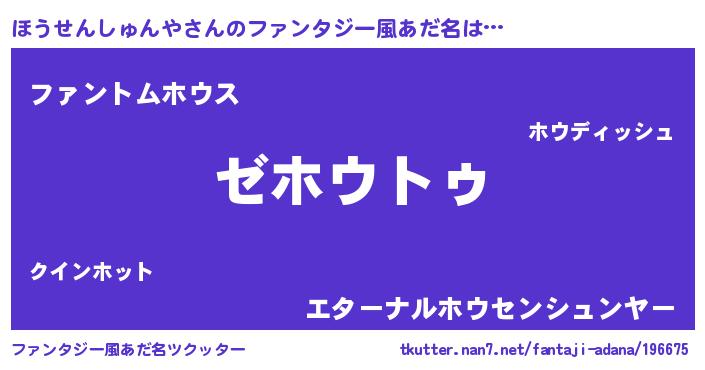 | 意味不明あだ名 | 『自称ほうせんしゅんや』 |