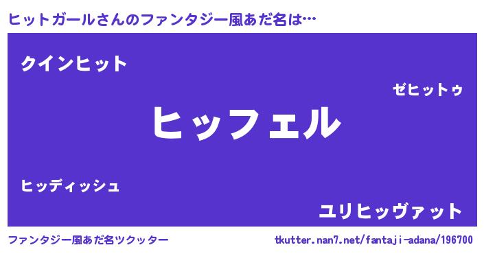 | ヘコむあだ名 | 『ヒッっふぃ~』『ヒットガール(笑)』 |