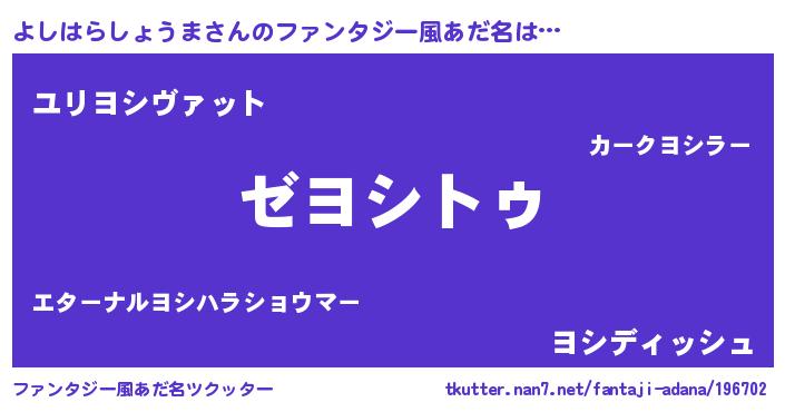 | ヘコむあだ名 | 『よしはらしょうま(震え声)』『なまこ酢』 |