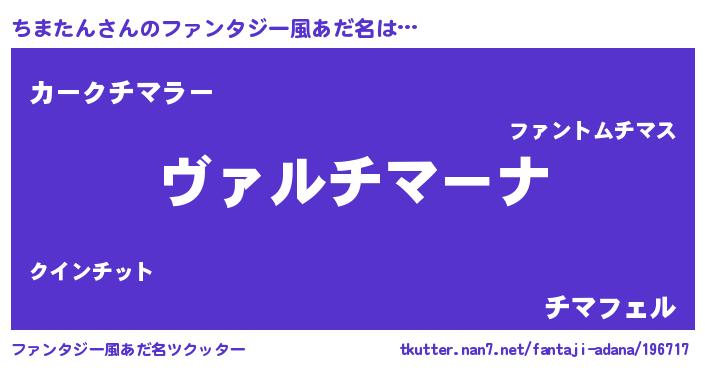 | 男性向けラノベタイトル風あだ名 | 『この素晴らしい世界にちまたんを!』 |