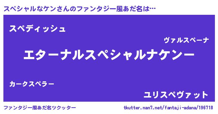 | 男性向けラノベタイトル風あだ名 | 『やはりスペシャルなケンの青春ラブコメはまちがっている 』 |