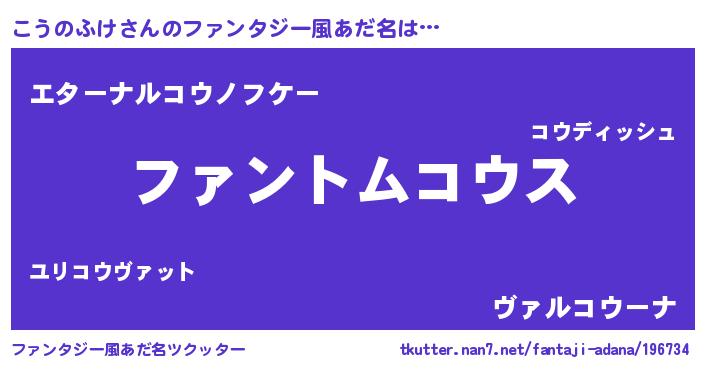 | 意味不明あだ名 | 『とにかく怪しいこうのふけ』 |