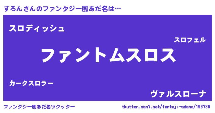 | 欧米人風あだ名 | 『アンジェラ・すろん』『ウサインすろん』 |