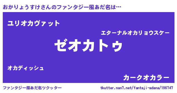 | 男性向けラノベタイトル風あだ名 | 『Re:おかりょうすけから始める異世界生活』 |