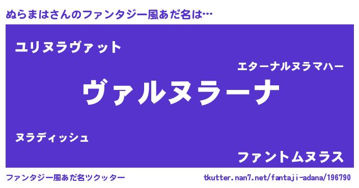 | 男性向けラノベタイトル風あだ名 | 『魔弾の王とぬらまは』 |
