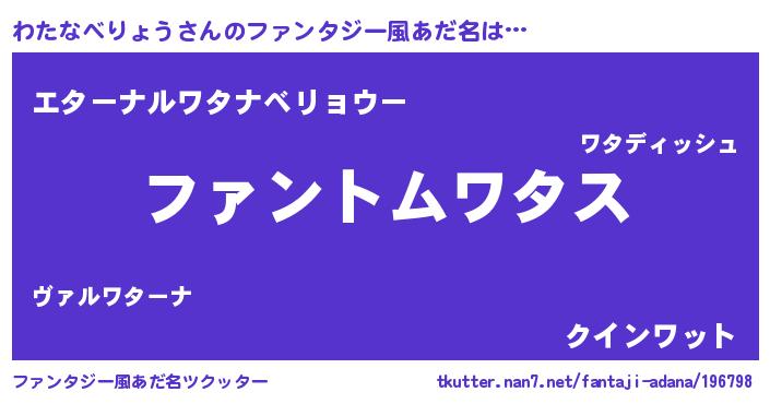 | 男性向けラノベタイトル風あだ名 | 『わたなべりょうの嫁は女の子じゃないと思った?』 |