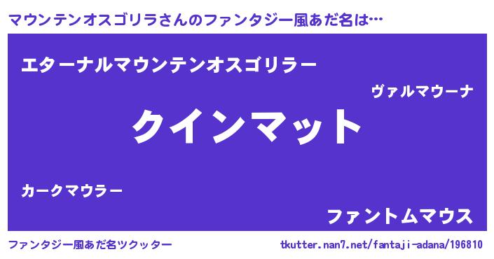 | 男性向けラノベタイトル風あだ名 | 『おまえをオタクにしてやるから、俺をマウンテンオスゴリラにしてくれ! 』 |