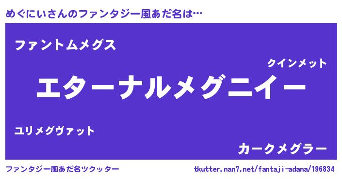 | 意味不明あだ名 | 『めぐにいフォーエバー』『自称めぐにい』 |