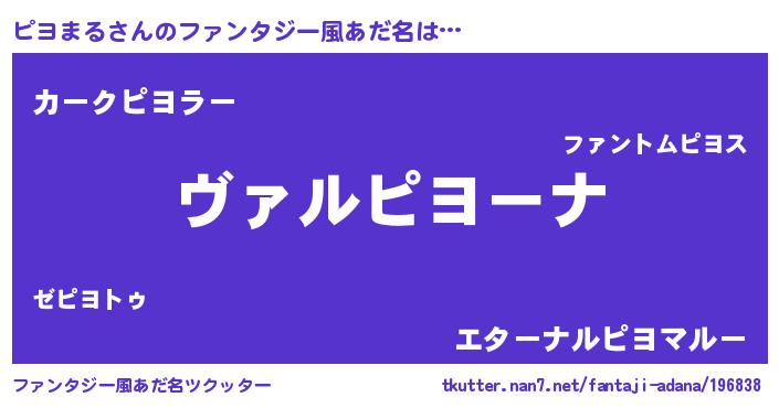 | ヒーロー風カッコイイあだ名 | 『仮面ピヨダー』『ウルトラピヨまるマン』 |