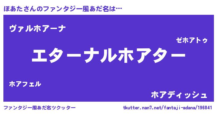 | 女子向けラノベタイトル風あだ名 | 『ほあたの雑貨屋さん』『闇のほあた』 |