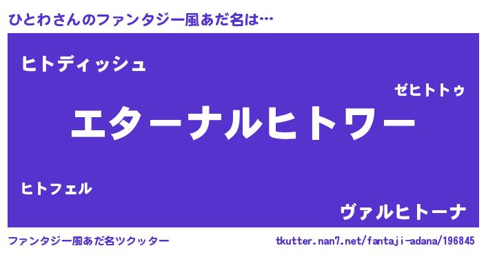 | ヒーロー風カッコイイあだ名 | 『ウルトラひとわマン』『ネオヒトワ』 |