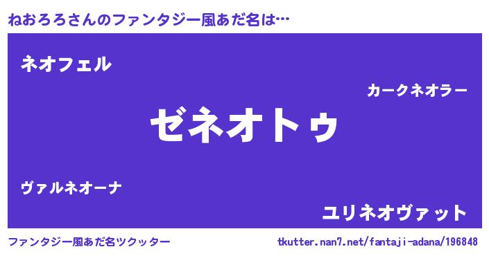 | 男性向けラノベタイトル風あだ名 | 『Re:ねおろろから始める異世界生活』 |