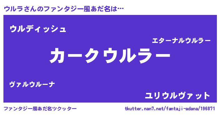 | 男性向けラノベタイトル風あだ名 | 『緋弾のウルラ』『はたらくウルラさま!』 |