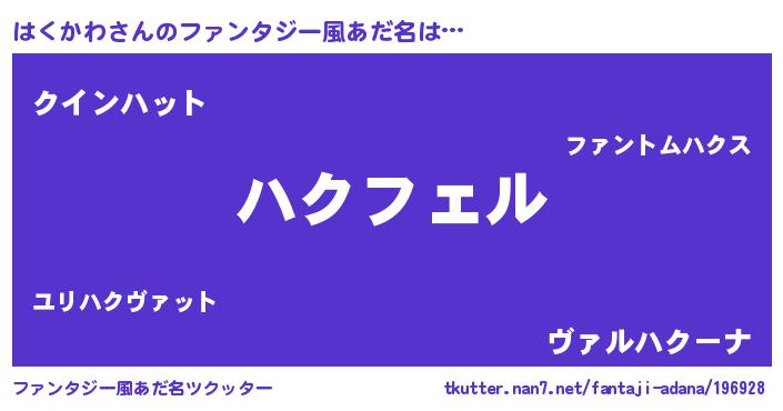 | ヒーロー風カッコイイあだ名 | 『スーパーハクカワ』『仮面ハクダー』 |