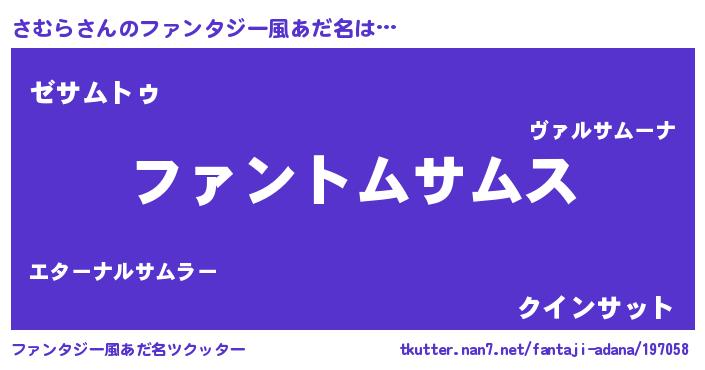 | 意味不明あだ名 | 『とにかく怪しいさむら』『自称さむら』 |