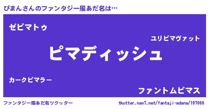 | 男性向けラノベタイトル風あだ名 | 『ぴまんという概念が存在しない退屈な世界 』 |