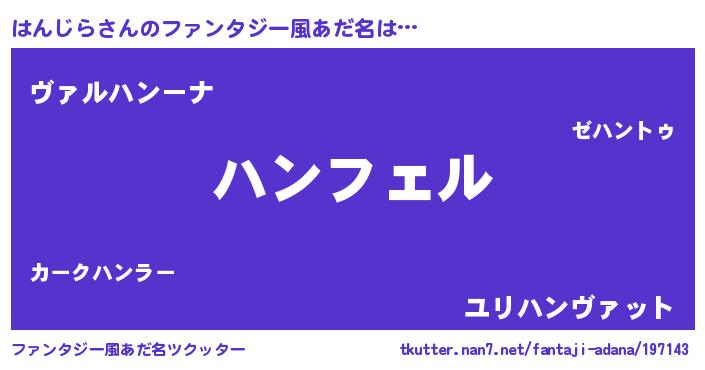 | 男性向けラノベタイトル風あだ名 | 『ハンジラアートオンライン』 |