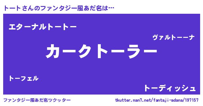| 男性向けラノベタイトル風あだ名 | 『緋弾のトート』『魔弾の王とトート』 |