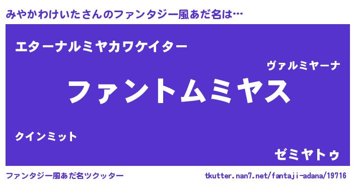 | ヒーロー風カッコイイあだ名 | 『炎刃騎士ミヤ』『仮面ミヤダー』 |