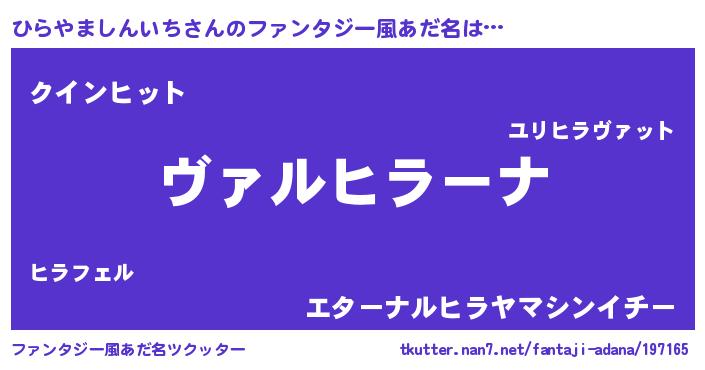 | 男性向けラノベタイトル風あだ名 | 『魔弾の王とひらやましんいち』 |
