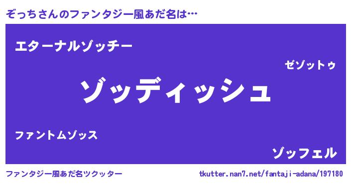 | ポケモン風あだ名 | 『ゼニゾッ』『ゾッチダネ』 |