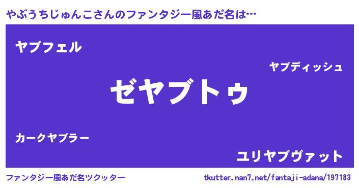 | 男性向けラノベタイトル風あだ名 | 『Re:やぶうちじゅんこから始める異世界生活』 |