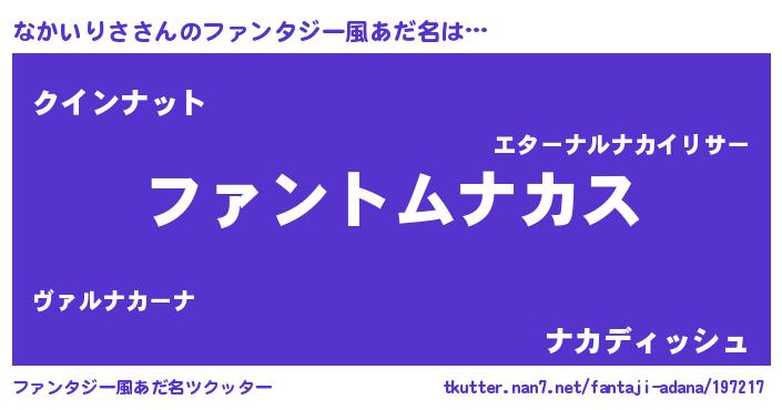 | ヒーロー風カッコイイあだ名 | 『黄金騎士ナカ』『慈愛の使者なかいりさ』 |
