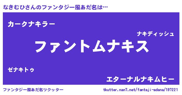 | 意味不明あだ名 | 『とにかく怪しいなきむひ』 |