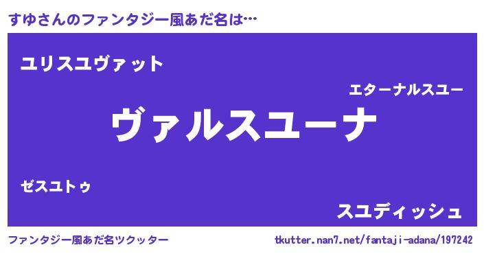| 男性向けラノベタイトル風あだ名 | 『魔弾の王とすゆ』 |