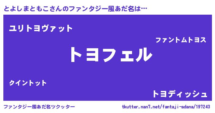 | 男性向けラノベタイトル風あだ名 | 『とよしまともこの憂鬱』 |