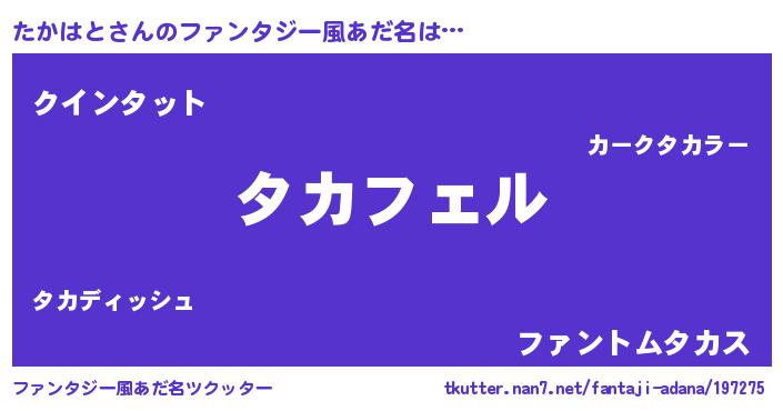 | ヘコむあだ名 | 『たかっふぃ~』『たかっぺ』 |