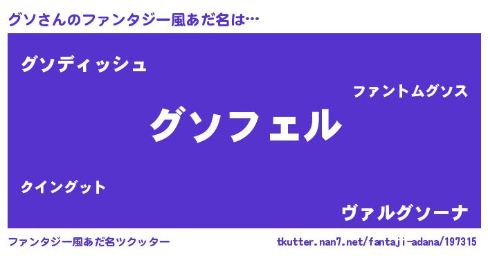 | ポケモン風あだ名 | 『グソゴンZ』『グソチュウ』『ヒグソ』 |
