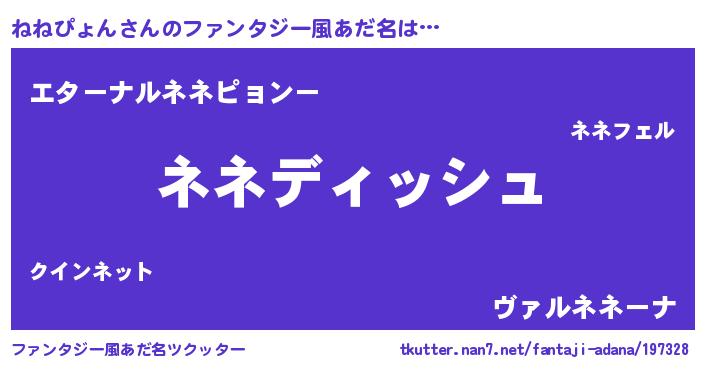 | ヒーロー風カッコイイあだ名 | 『ネオネネピョン』『仮面ネネダー』 |