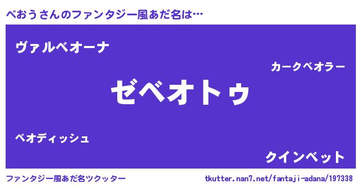 | 男性向けラノベタイトル風あだ名 | 『Re:べおうから始める異世界生活』 |