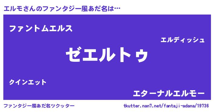 | 意味不明あだ名 | 『自称エルモ』『とにかく怪しいエルモ』 |