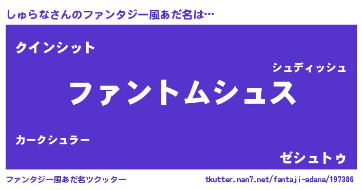 | ヒーロー風カッコイイあだ名 | 『幻影騎士シュ』『慈愛の使者しゅらな』 |