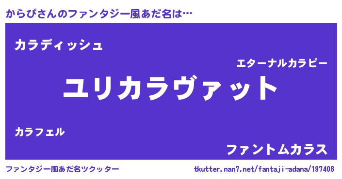 | ヘコむあだ名 | 『からぴ(笑)』『からを』『なまこ酢』 |