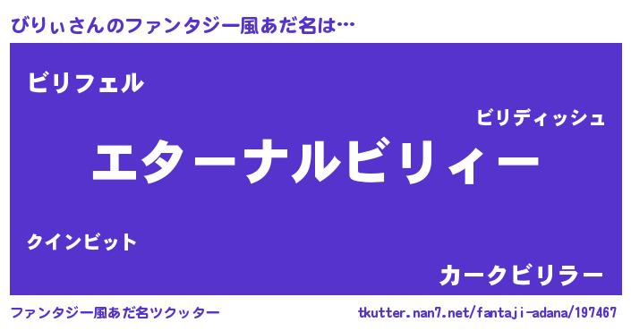 | ポケモン風あだ名 | 『ビリィダネ』『ビリチュウ』 |