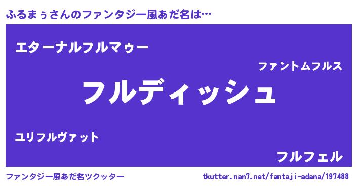 | ヒーロー風カッコイイあだ名 | 『ネオフルマゥ』『ウルトラふるまぅマン』 |